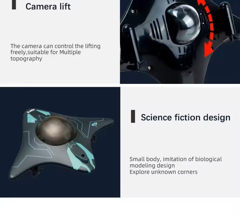 Fånga den fascinerande undervattensvärlden ur ett förstapersonsperspektiv. Den högupplösta, nedåtriktade kameran ger tydliga, detaljerade videor och foton – allt sparat direkt på din smartphone och redo att delas.
