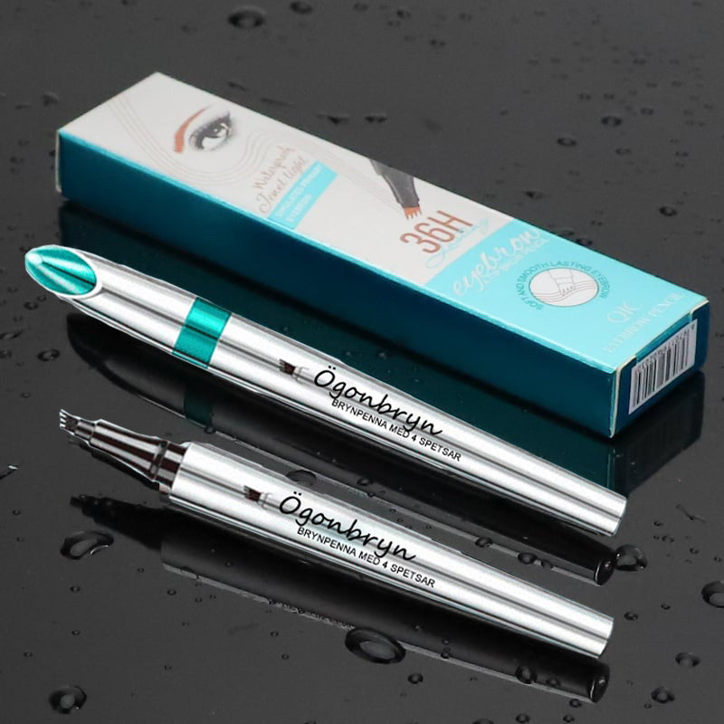 🔥Köp 1 Få 1 Gratis🔥3D Vattentät mikroblading ögonbrynspenna 4 gaffelspets tatueringspenna (Förpackning med 2)