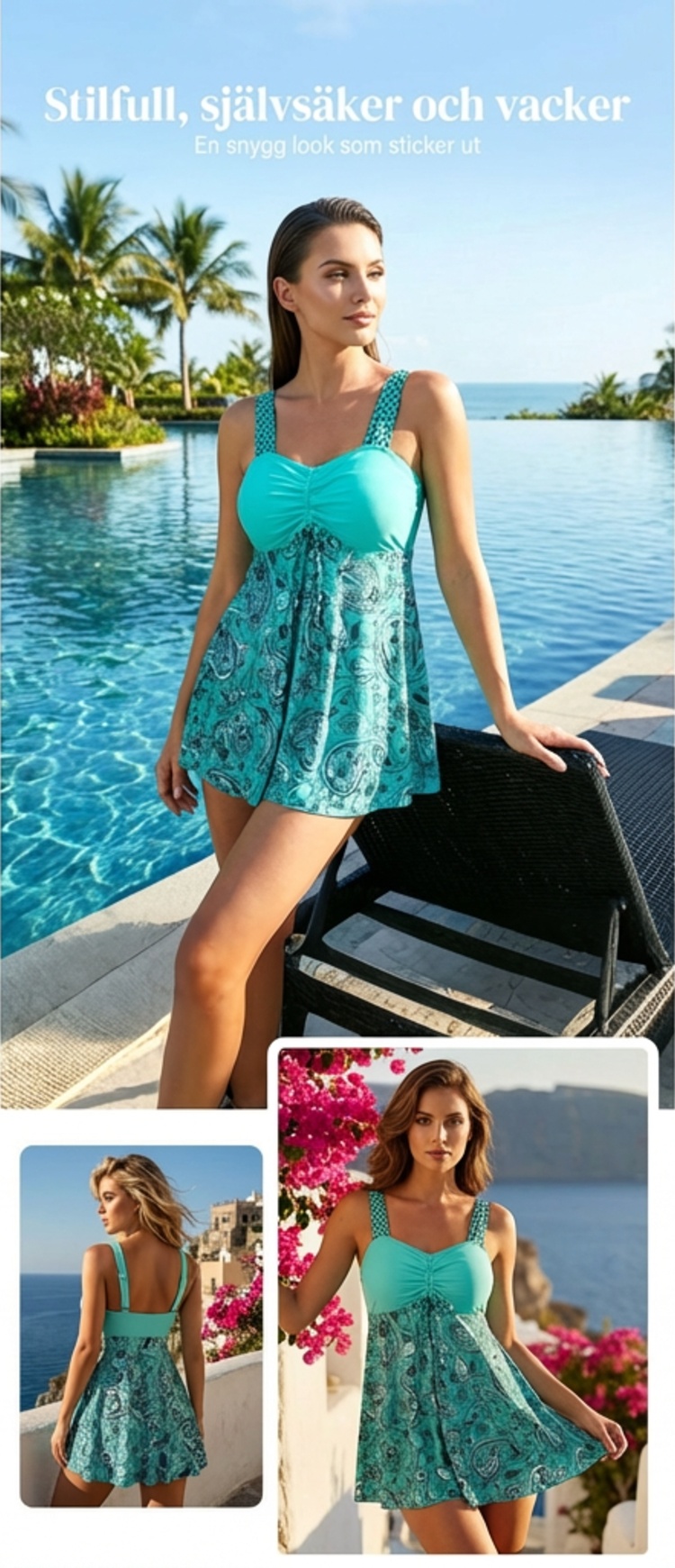 🔥👙Strap Top & åtsittande badshorts Separerbara badkläder